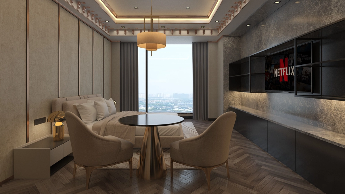 Natural light pours in through floor-to-ceiling windows, highlighting bespoke furnishings and curated details that speak to both timeless sophistication and contemporary ease. Equipped with state-of-the-art amenities and seamless service access, the Grand Residence is ideal for extended stays, providing a sense of home without compromising on luxury.
